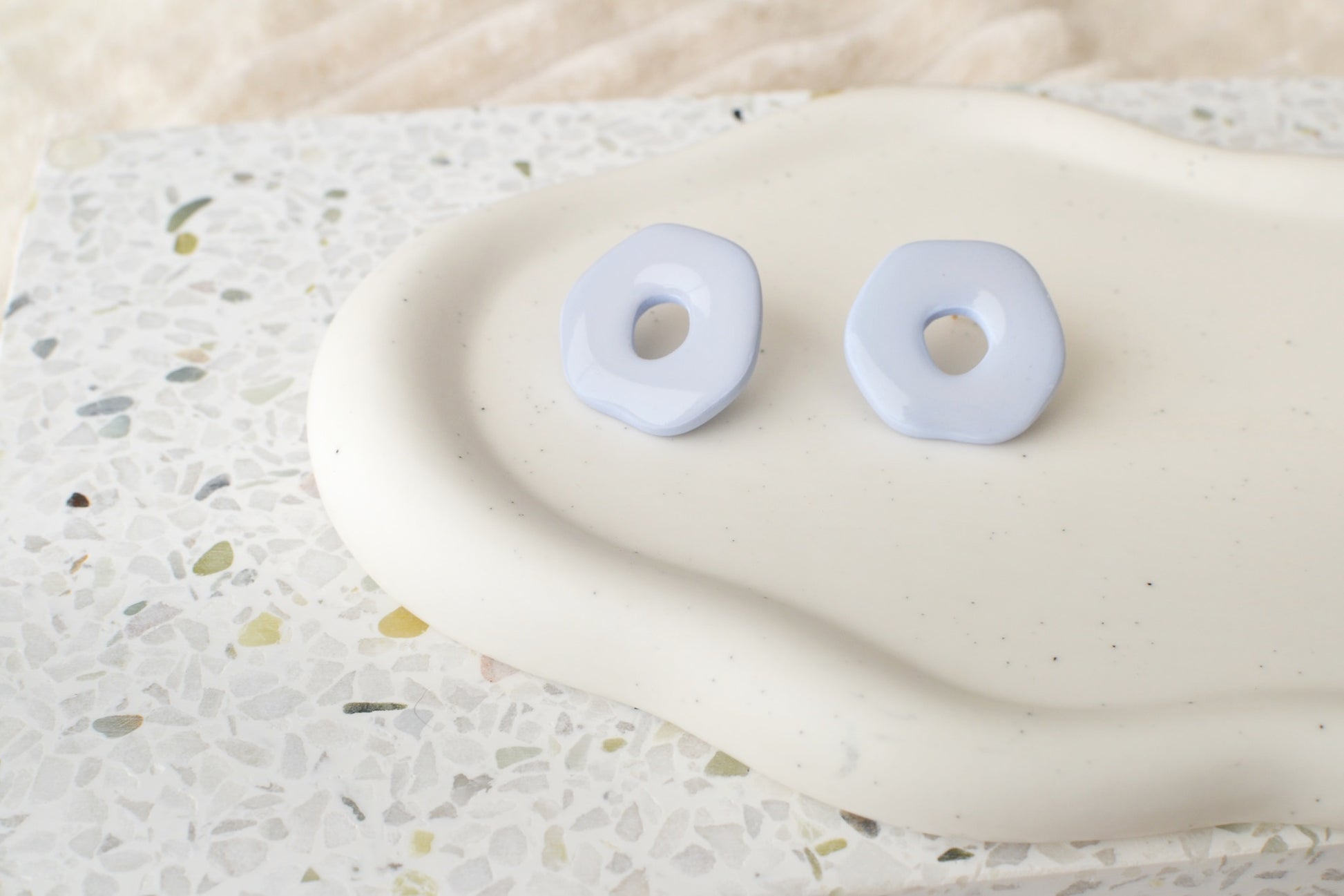 These oversized stud earrings are coated with epoxy resin. All pieces designed and handcrafted by myself, using quality lightweight polymer clay. These earrings are finished with a gold post and silicone backs. One of a kind — no duplicates in stock!