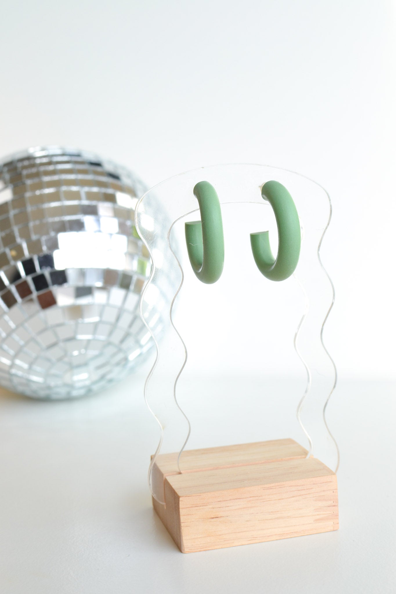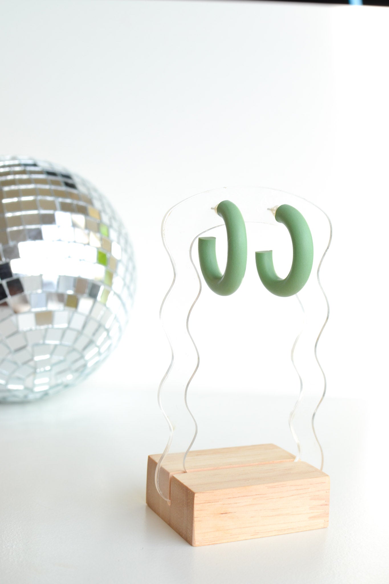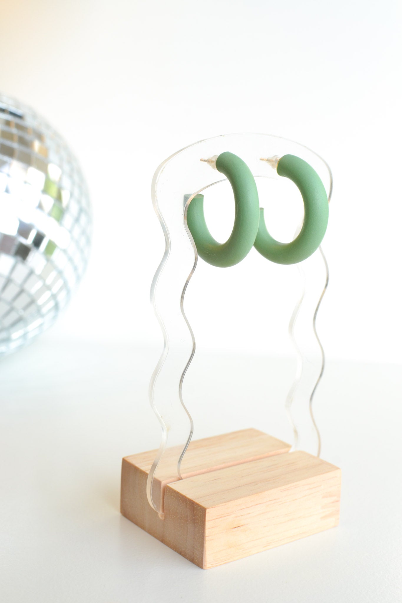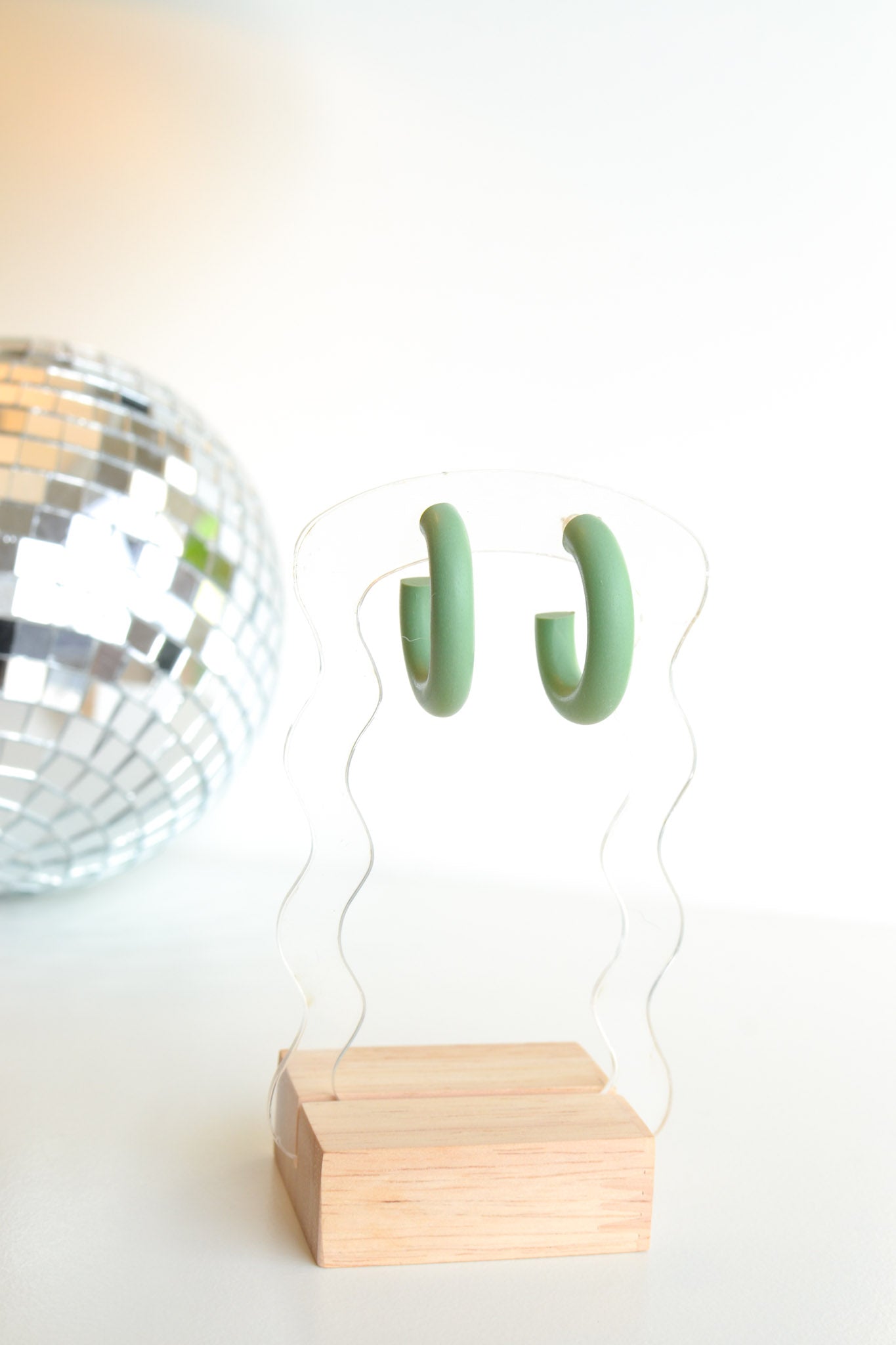 These polymer clay hoops are bold yet lightweight measuring at 1” long. Hypoallergenic titanium posts and backs: ideal for sensitive ears.