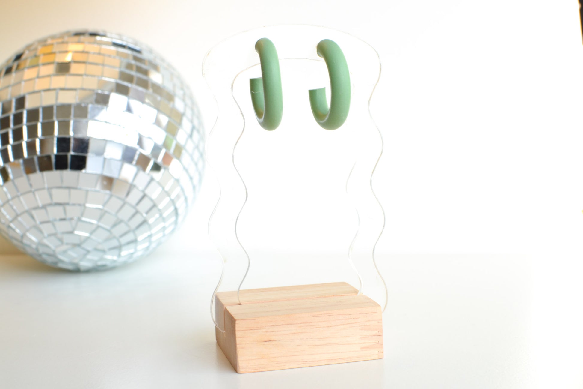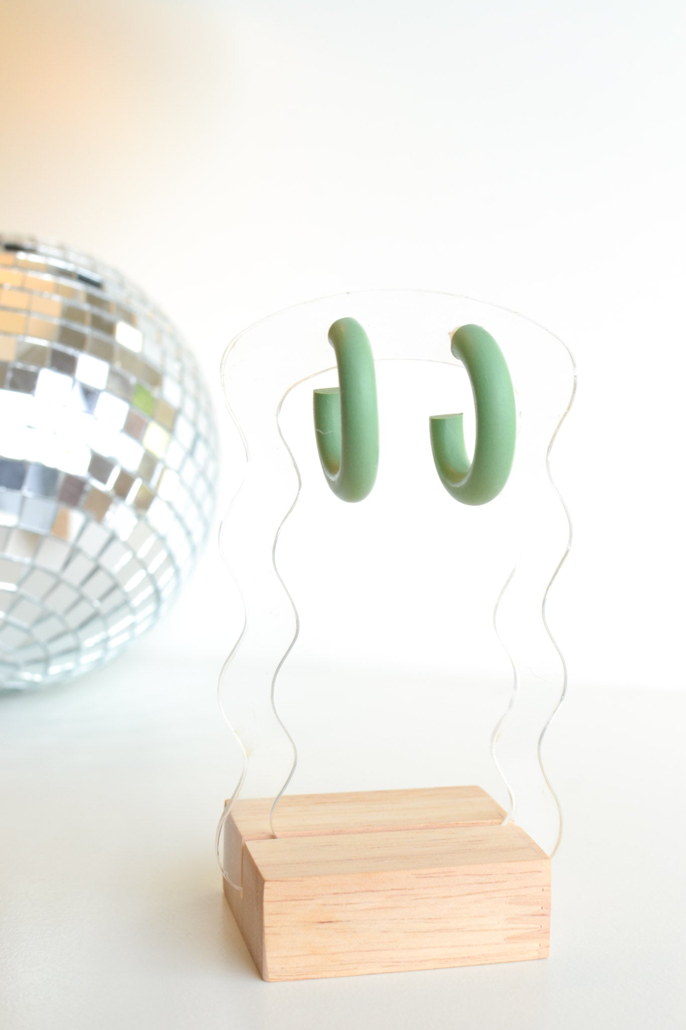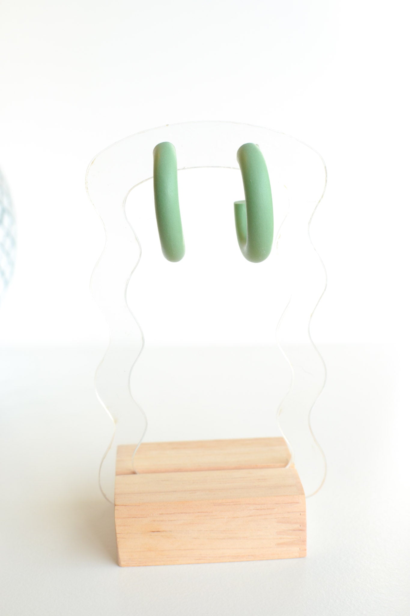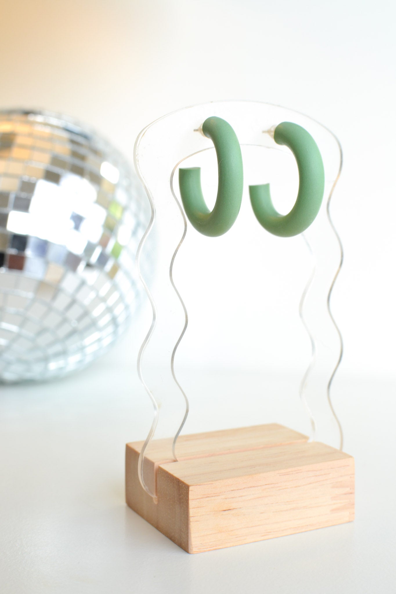 These polymer clay hoops are bold yet lightweight measuring at 1” long. Hypoallergenic titanium posts and backs: ideal for sensitive ears.