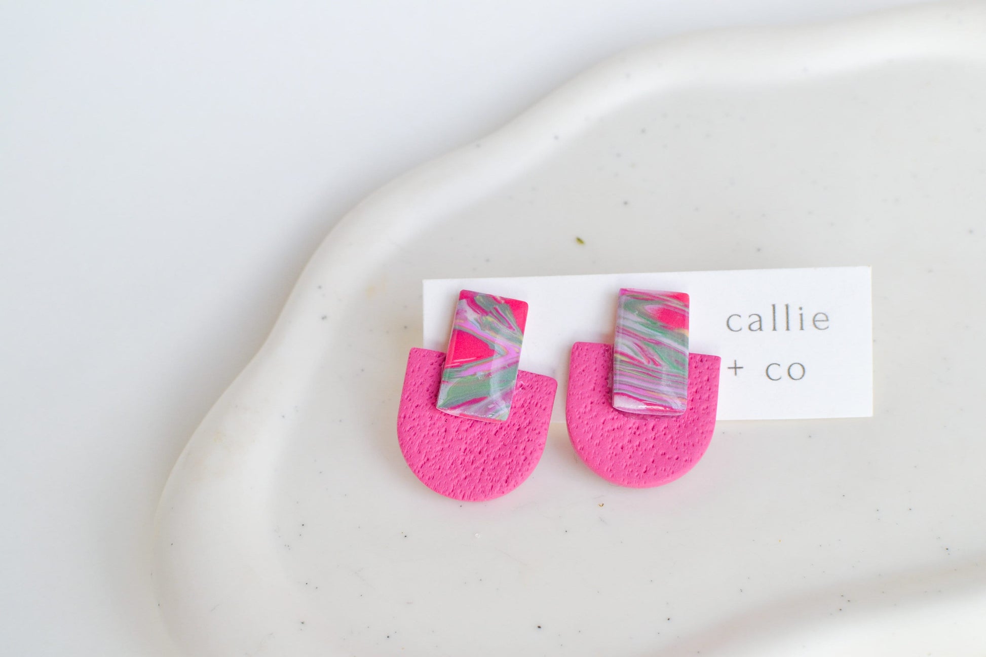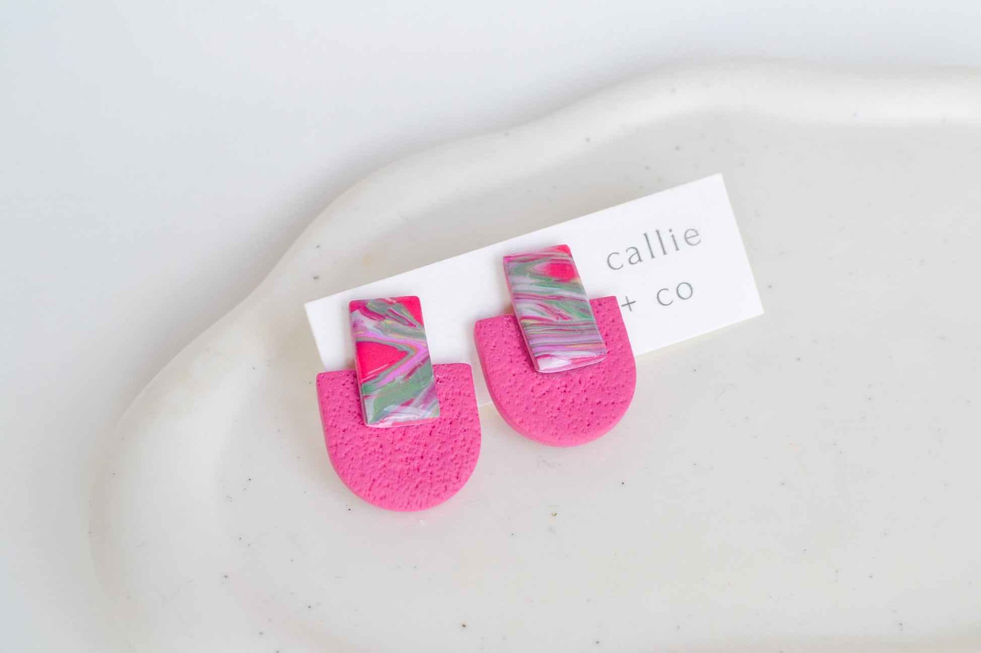 Modern, lightweight polymer clay earrings handmade in San Francisco, California.